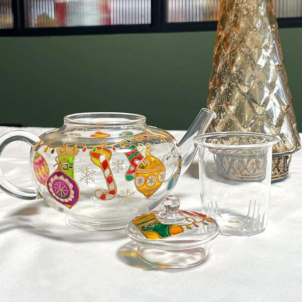xmasオーナメントティーカップ&ソーサー|耐熱/手描き/記念日/パーティ