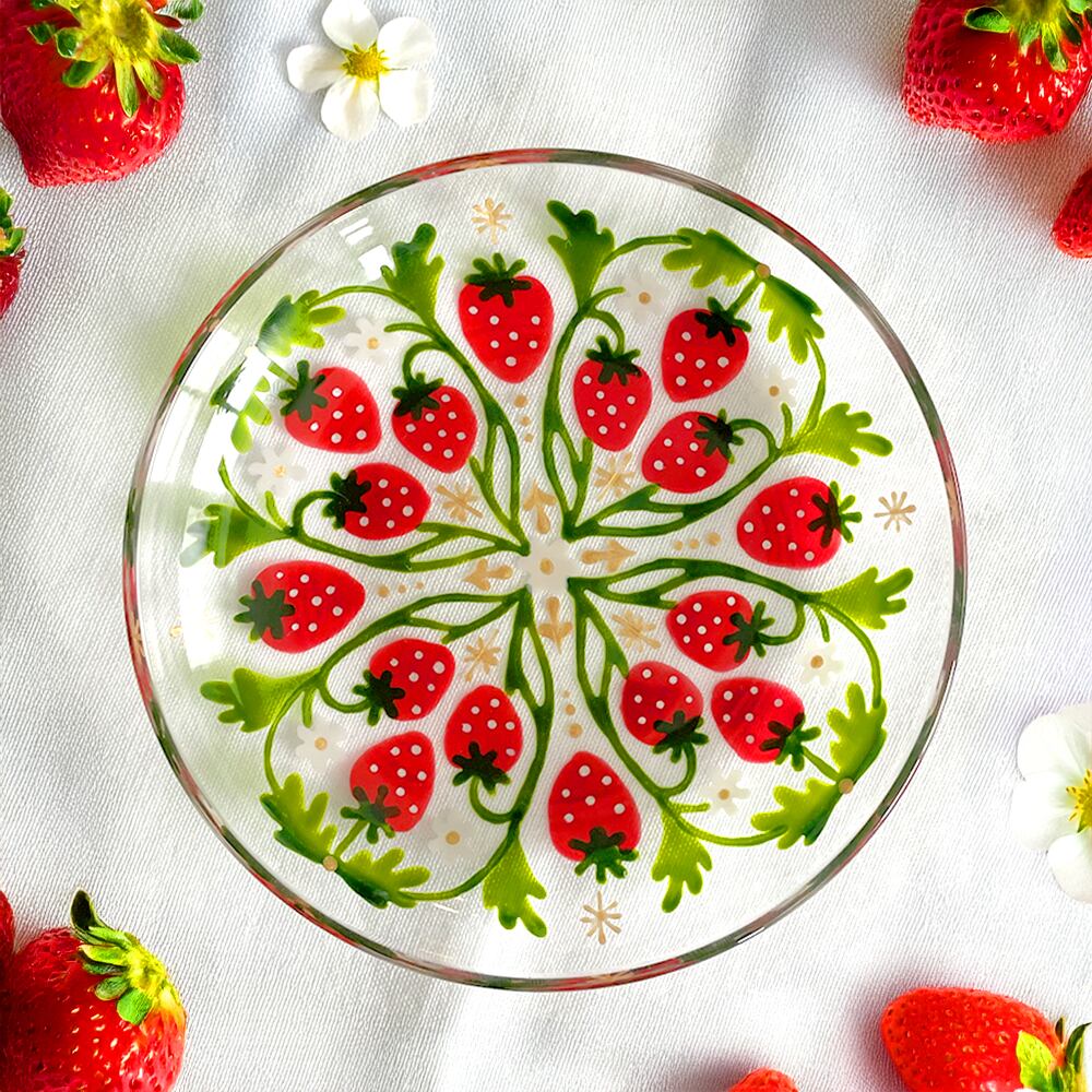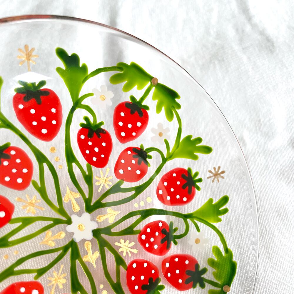 いちごと白花の手描きプレート|母の日/還暦/結婚祝い/退職祝い