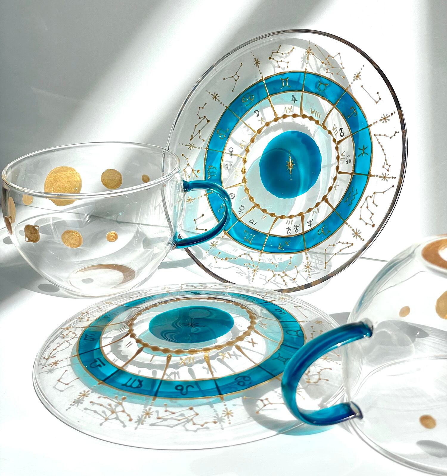 神秘的で美しいホロスコープを描いたティーカップ&ソーサー