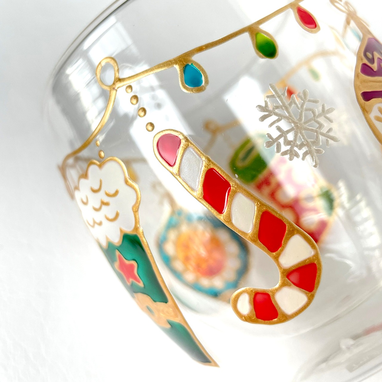 Xmasオーナメント Wウォール耐熱グラス|手描き/記念日/パーティ